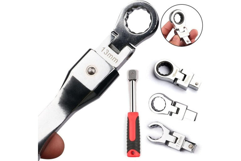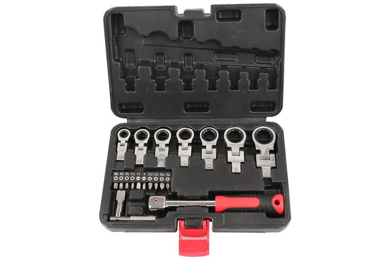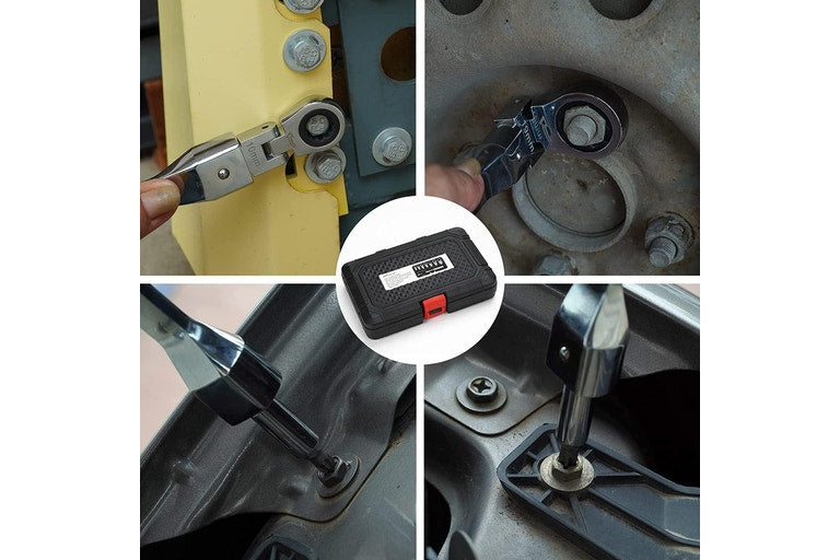 This versatile ratchet wrench and multi-tool set is perfect for auto repair, bike maintenance, and DIY projects. Made from chrome vanadium steel and heat-treated for durability, it features a 72-tooth ratchet gear with 180-degree flex head for easy access in tight spaces.