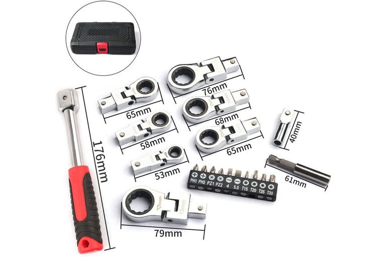 20Pcs Flex Head Ratchet Wrench Set Multi Tool Kit 8mm-19mm Torx
