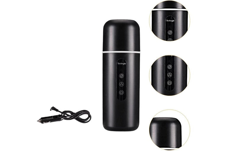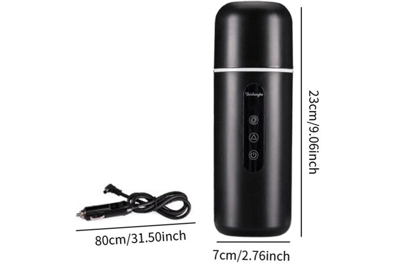 This 12V-24V car travel mug heats drinks fast, ideal for commuting, travel, and long drives. Perfect for coffee, tea, or milk powder.