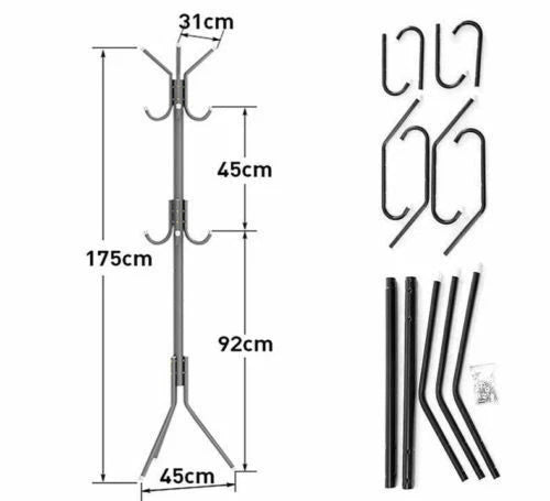 12 hooks that are separated into 3 tiers, providing you an ample amount of hanging options for coats, heavy garments, clothes replaced, hats, scarves and accessories.