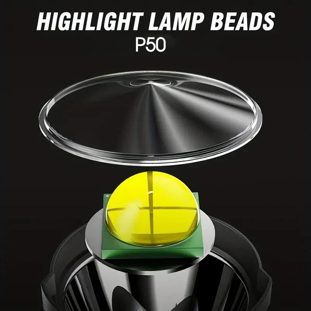 - Equipped with advanced P50 LED (4-wick), this spotlight casts powerful light up to 1650ft—ideal for large areas, search & rescue, or camping.
